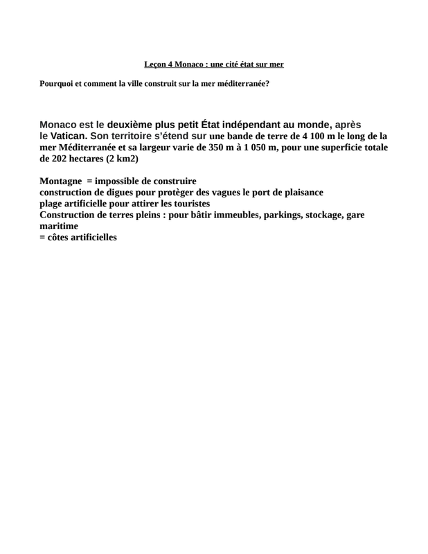 5 / leçon 4 Monaco une cité Etat sur mer