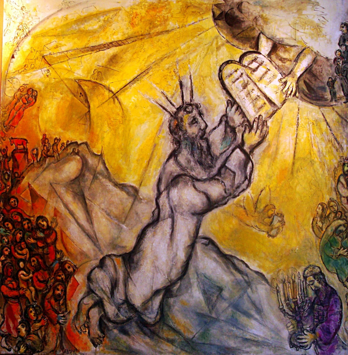 IMAGE : MARC CHAGALL. MOÏSE RECEVANT LES TABLES DE LA LOI. 1960-66. Huile sur toile. Musée Nice.